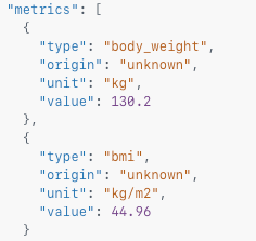 We packed the data model with context: where the metric came from, how it was generated, what kind of device was used, and whether it was entered manually. So within seconds, you can see that a patient weighed themselves and manually entered “130.2 KG.”